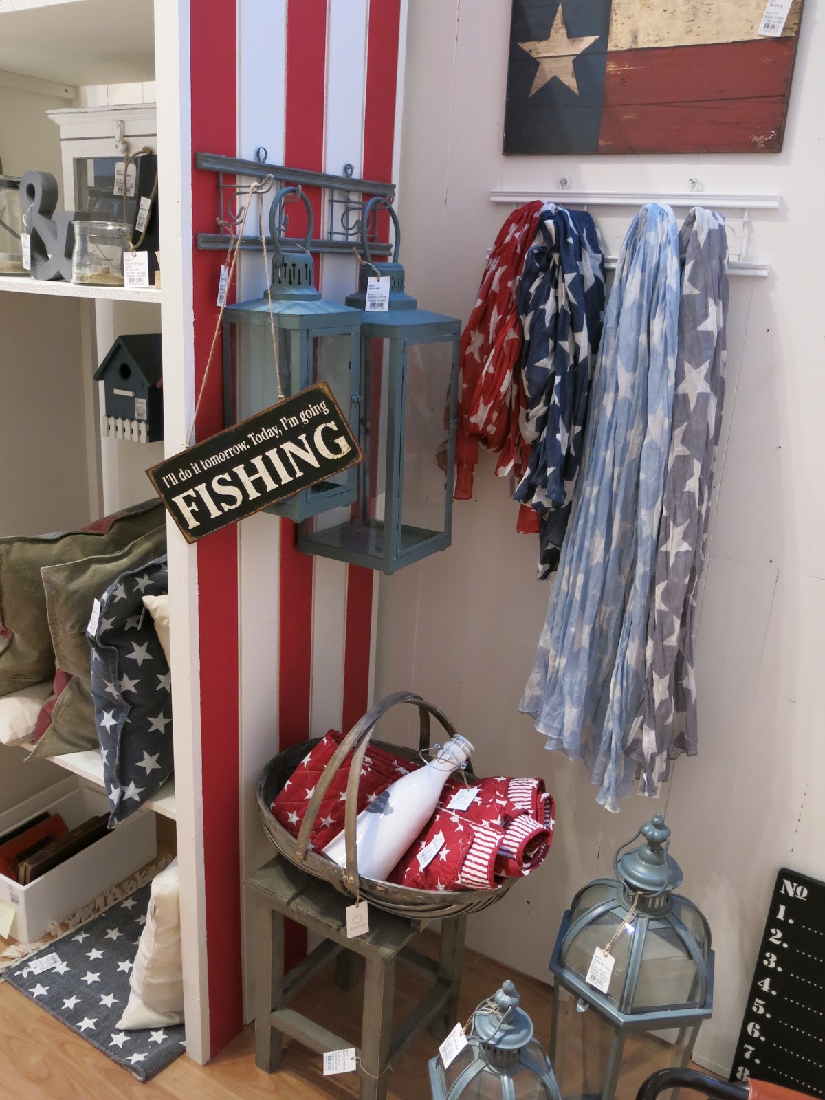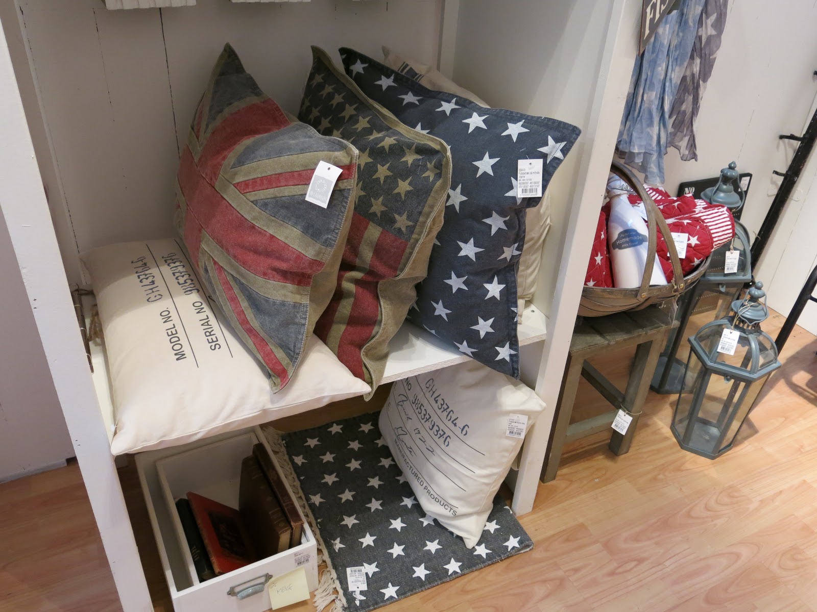 | Jarní kolekce textilu – nechybí hvězdy, samet ani lněné retro polštáře s potiskem ze starých pohlednic. |