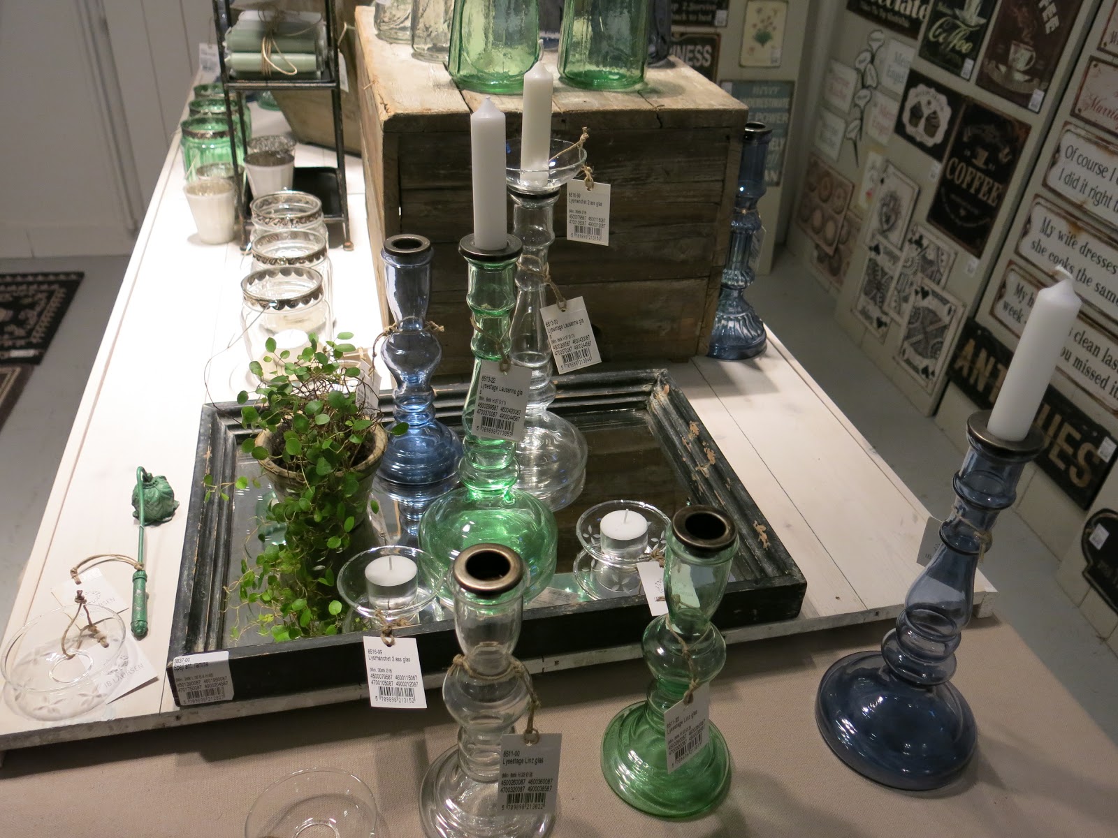 | Zelená barva bude letos in a bude pokračovat i na další vánoční sezónu. Líbí se mi lehkost a vzdušnost těchto barevných svícnů. Všimněte si i toho podnosu – je to vlastně zrcadlo v rámu, ale je vyrobený tak, aby mohl mít obě funkce! |
