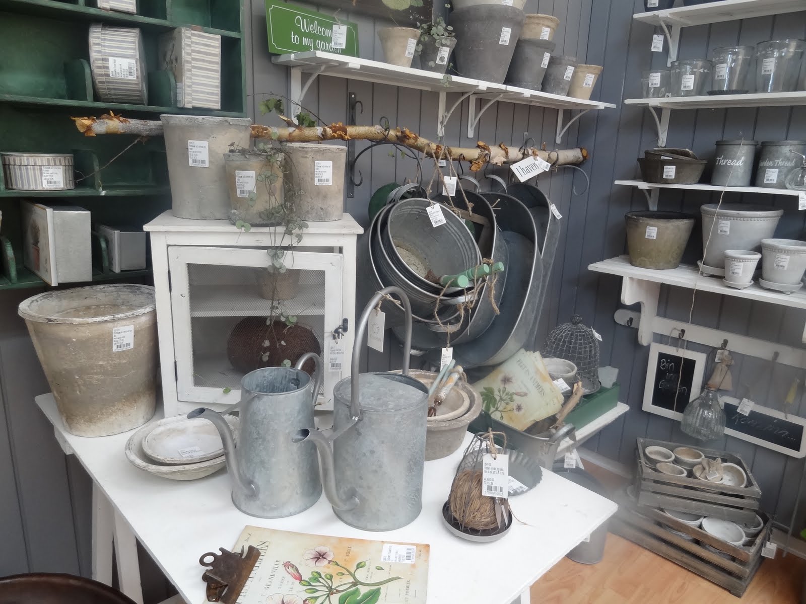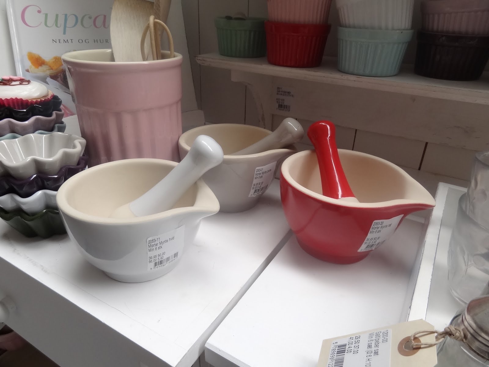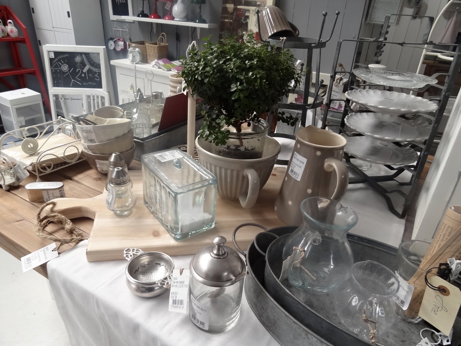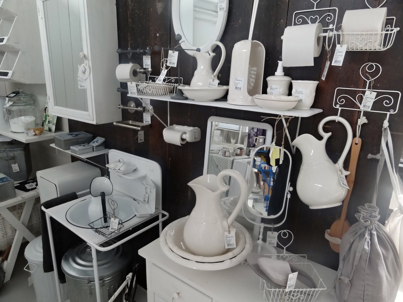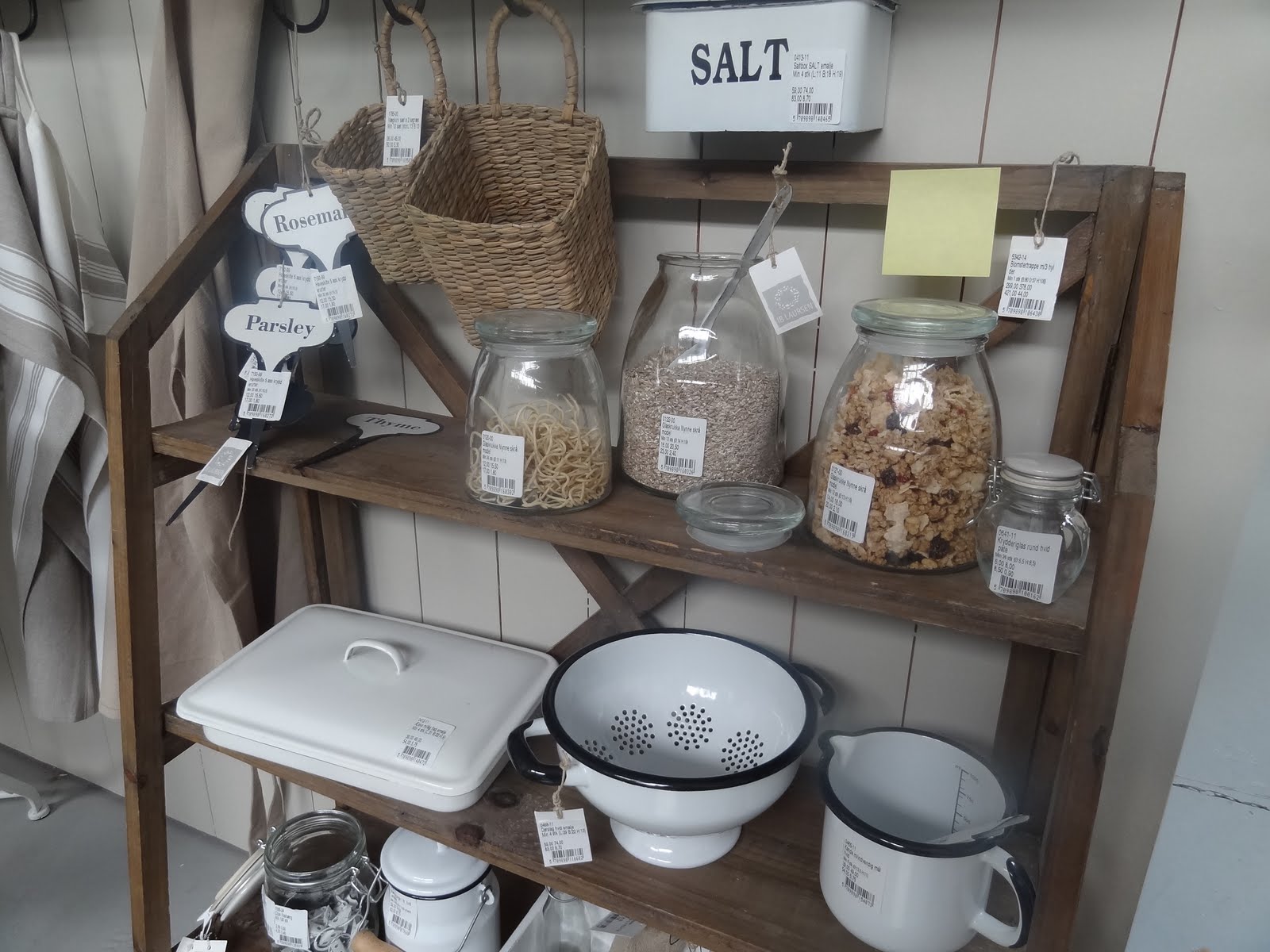 Oblíbená patrová police a smaltované kuchyňské doplňky…novinkou jsou hnědé závěsné košíčky.