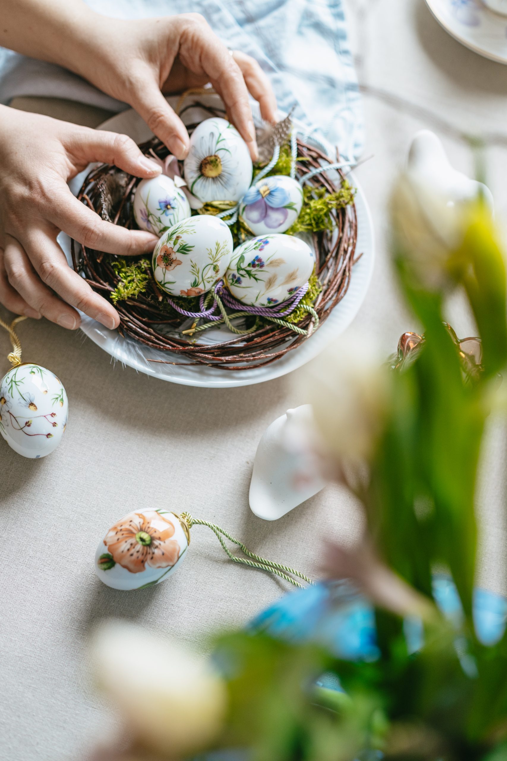 Krásná jarní výzdoba nikdy nebyla jednodušší. Během víkendové procházky si domů přineste pár holých větviček břízy, kočiček nebo modřínu. Vložte jarní proutky do vaší oblíbené vázy – třeba do ikonické Bloom Botanica od značky Georg Jensen – a zavěste na ně porcelánová velikonoční vajíčka v různých výškách. Vytvoříte tak nádherný kousek přírody přímo uprostřed stolu.