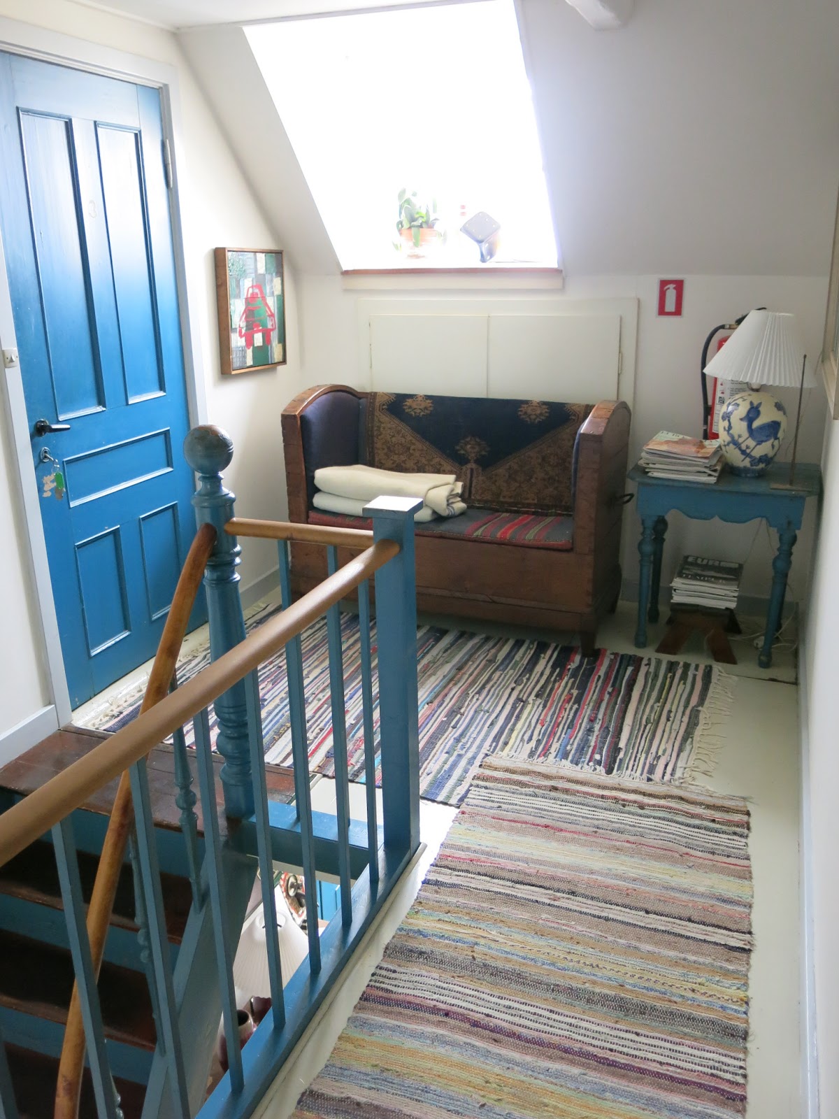 Domeček je v patře hodně malý, ale je to tak útulné! Všude je vidět, že Stine miluje umění…
