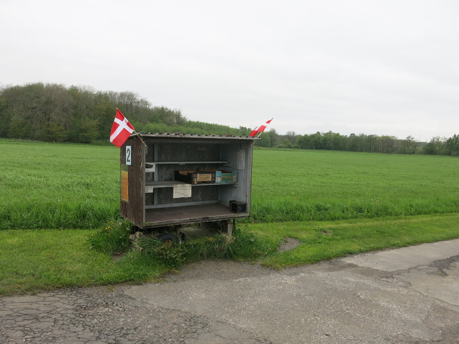 Na Bornholmu se nikde nekrade – není kam utéct. Proto se místní farmáři neobtěžují stát celý den u stánku. Prostě u svého políčka postaví budku, naskládají tam ráno úrodu, papír s cenami a pokladničku a večer si přijdou pro tržbu 🙂 Dokážete si to představit u nás? :-))))