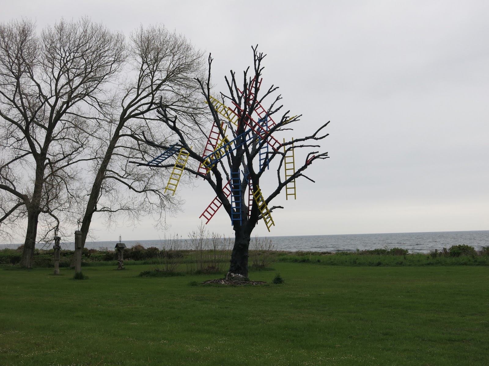 Jeden místní umělec se baví tím, že všelijak oživuje staré suché stromy 🙂